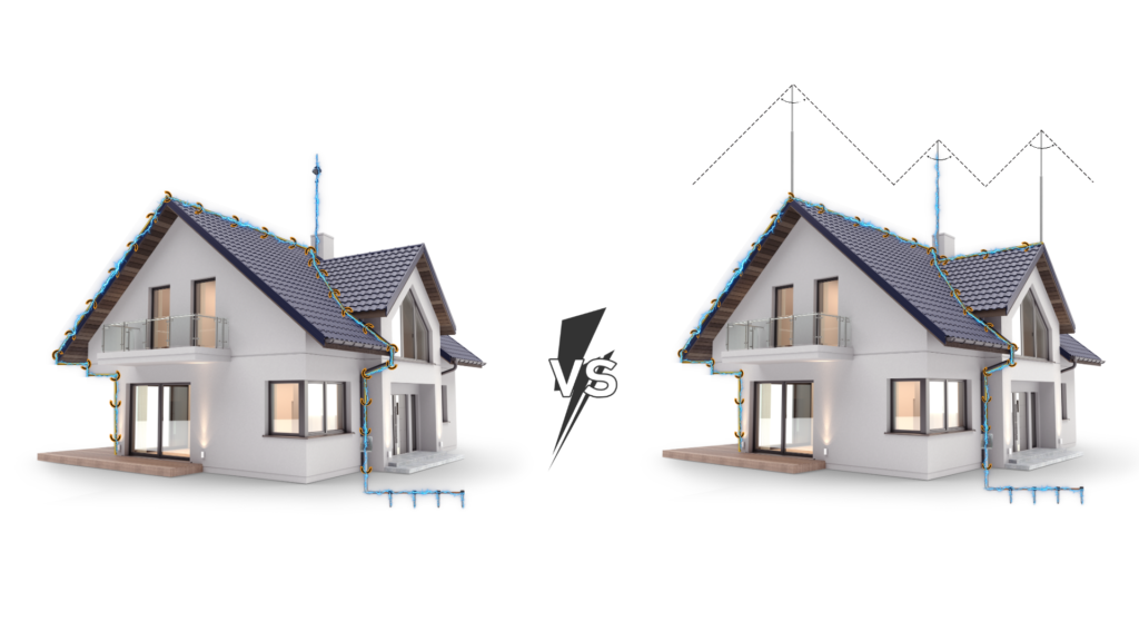 Активната мълниезащита използва мълниеприемник с изпреварващо действие (ESE), който осигурява по-голям радиус на защита и е подходящ за по-големи обекти.